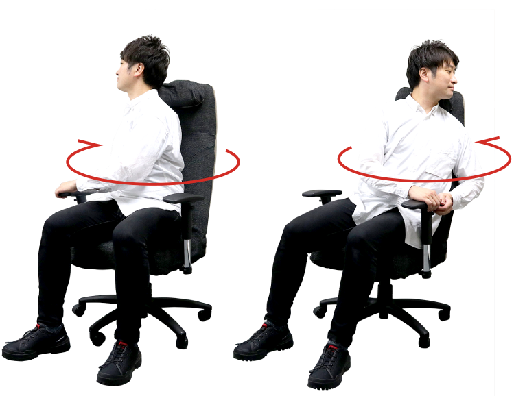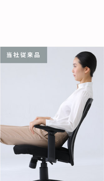 たっぷりとした腰幅とすっきりとした脇幅のラインは、安定感とともに大きく体を動かして後ろを振り返ったり、後ろの物をとったりする動作を容易にします。