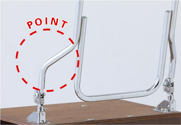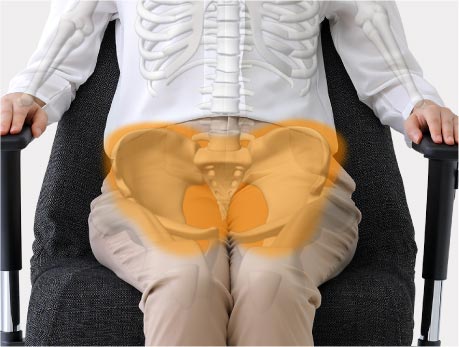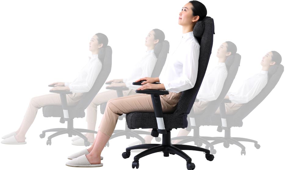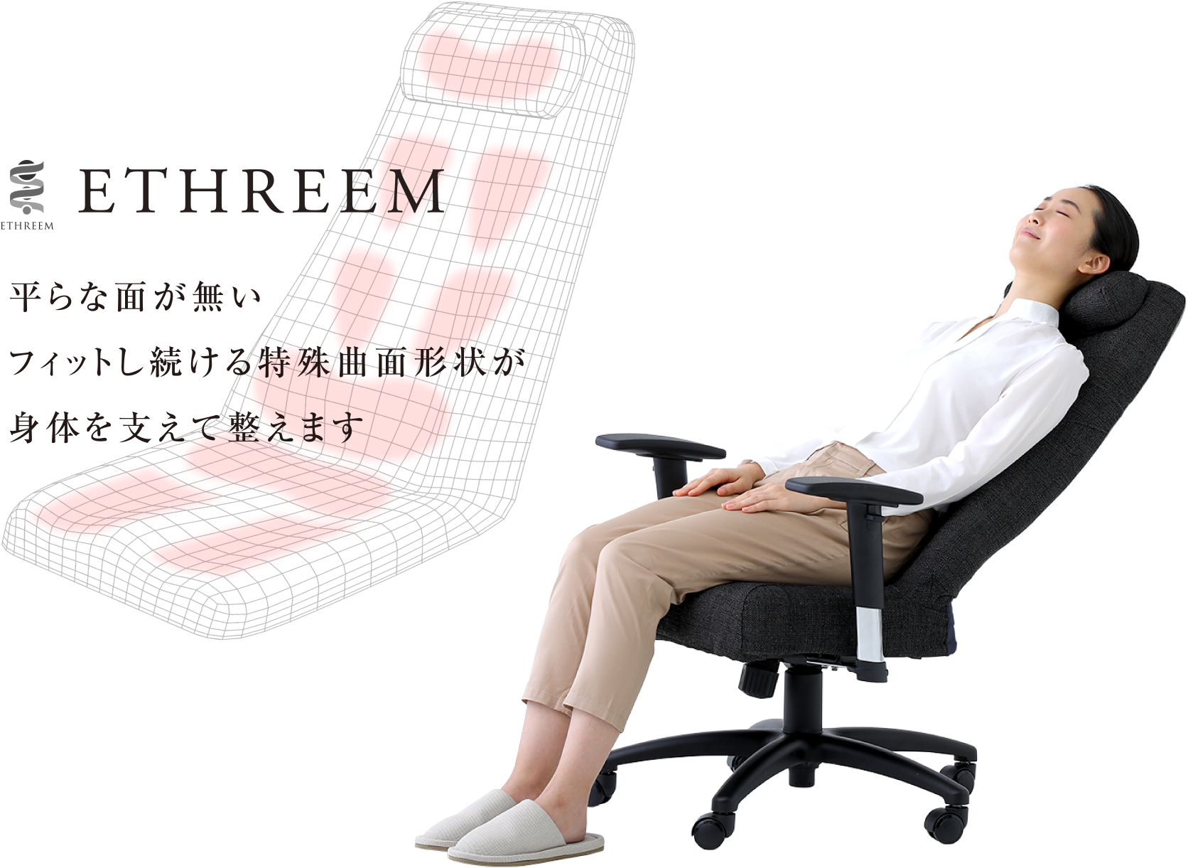 人の体の軸に近づけたフレームの関節軸、エスリーム技術の心地よさを最大限に活かすためのなだらかなパイプ形状。見えない骨格構造にとことんこだわり、かつてない安心感を実現しました。