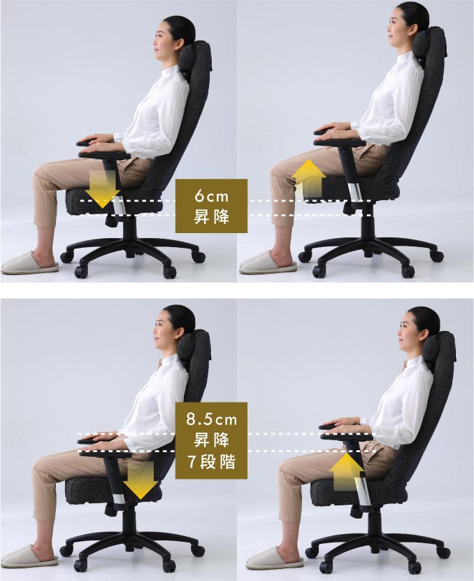レバーひとつで自分サイズに高さ調整 アームレストもお好みにカスタマイズ