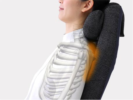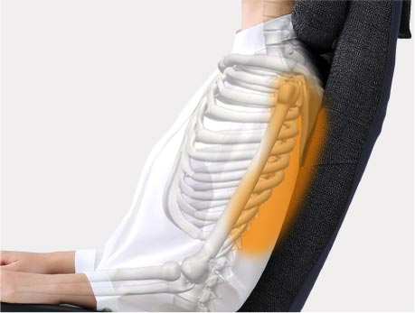 肋骨の重みを支えると背中の緊張が緩み胸をゆったりと広げて座ることができます。深い呼吸を助ける働きもあります。