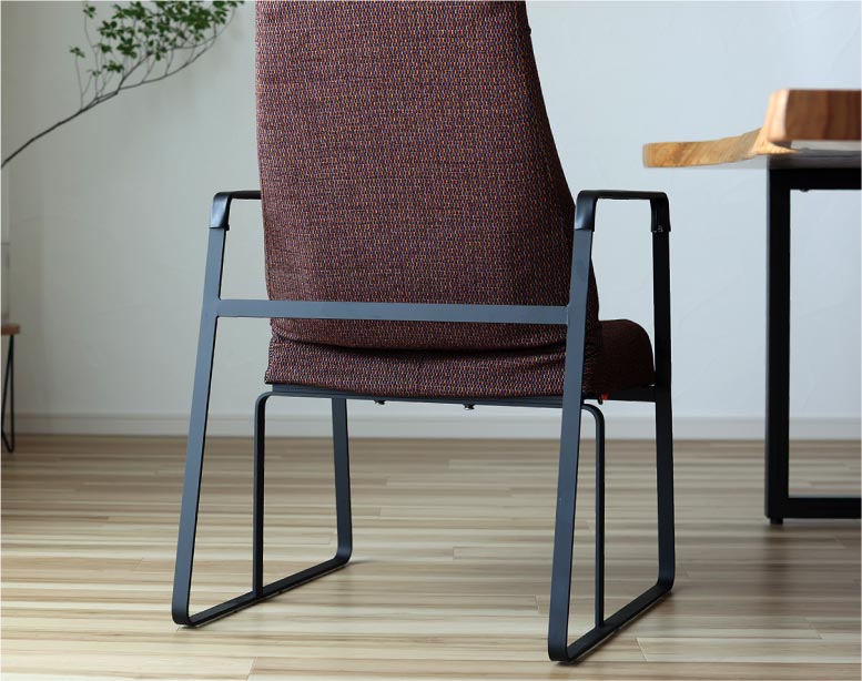 ビニールレザーのアームサポートカバーでアイアンフレームの硬さを和らげます。