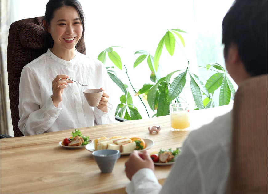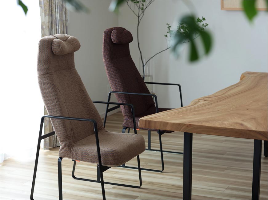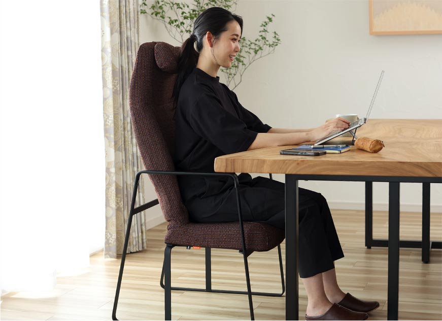 最適な姿勢を保ち、心地よく座り続けられるので、食事もしやすいです。