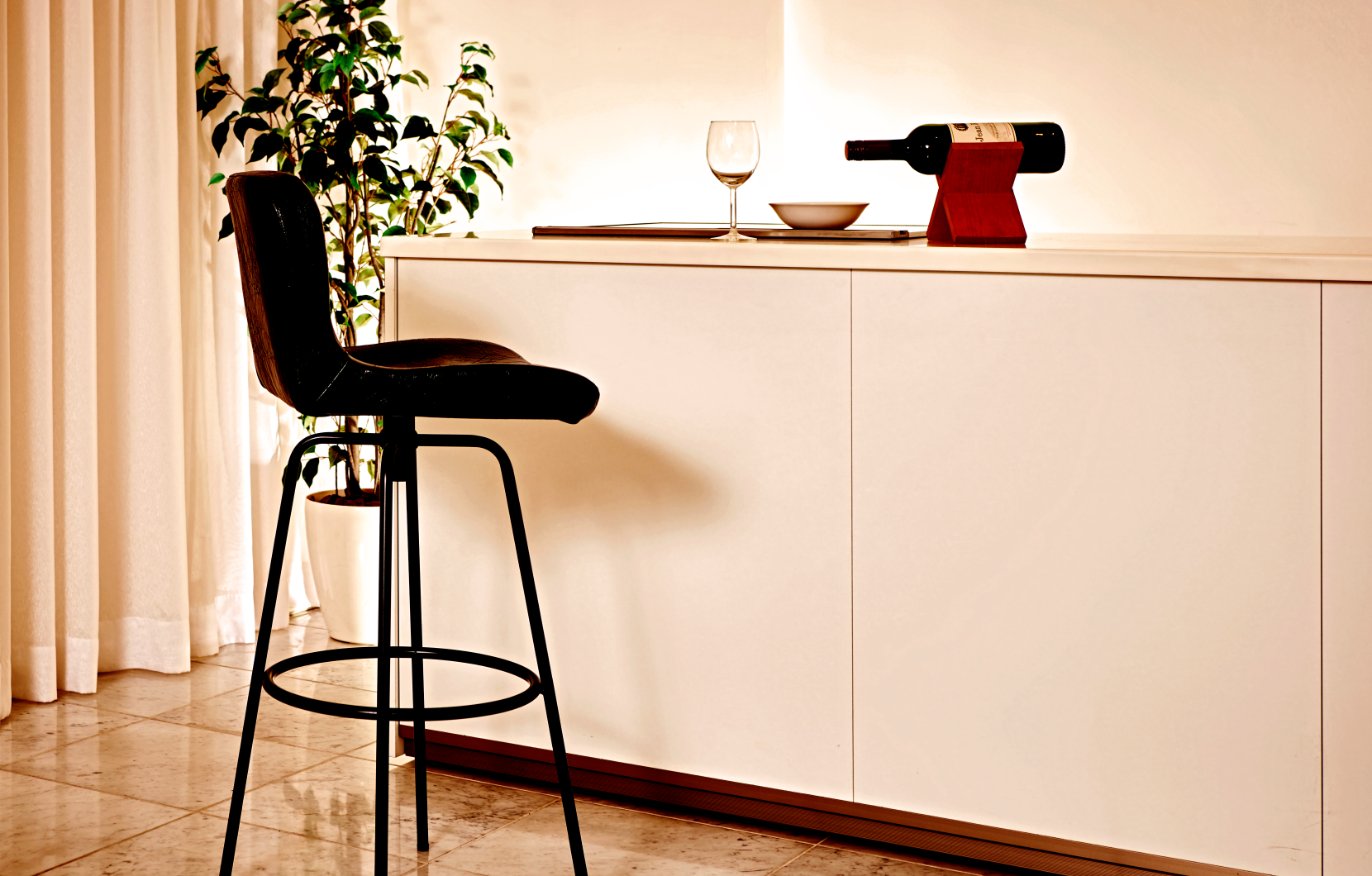 レセプシ ョンやハイカウンターデスク、バーカウンターに最適なスツールとして表現しました。